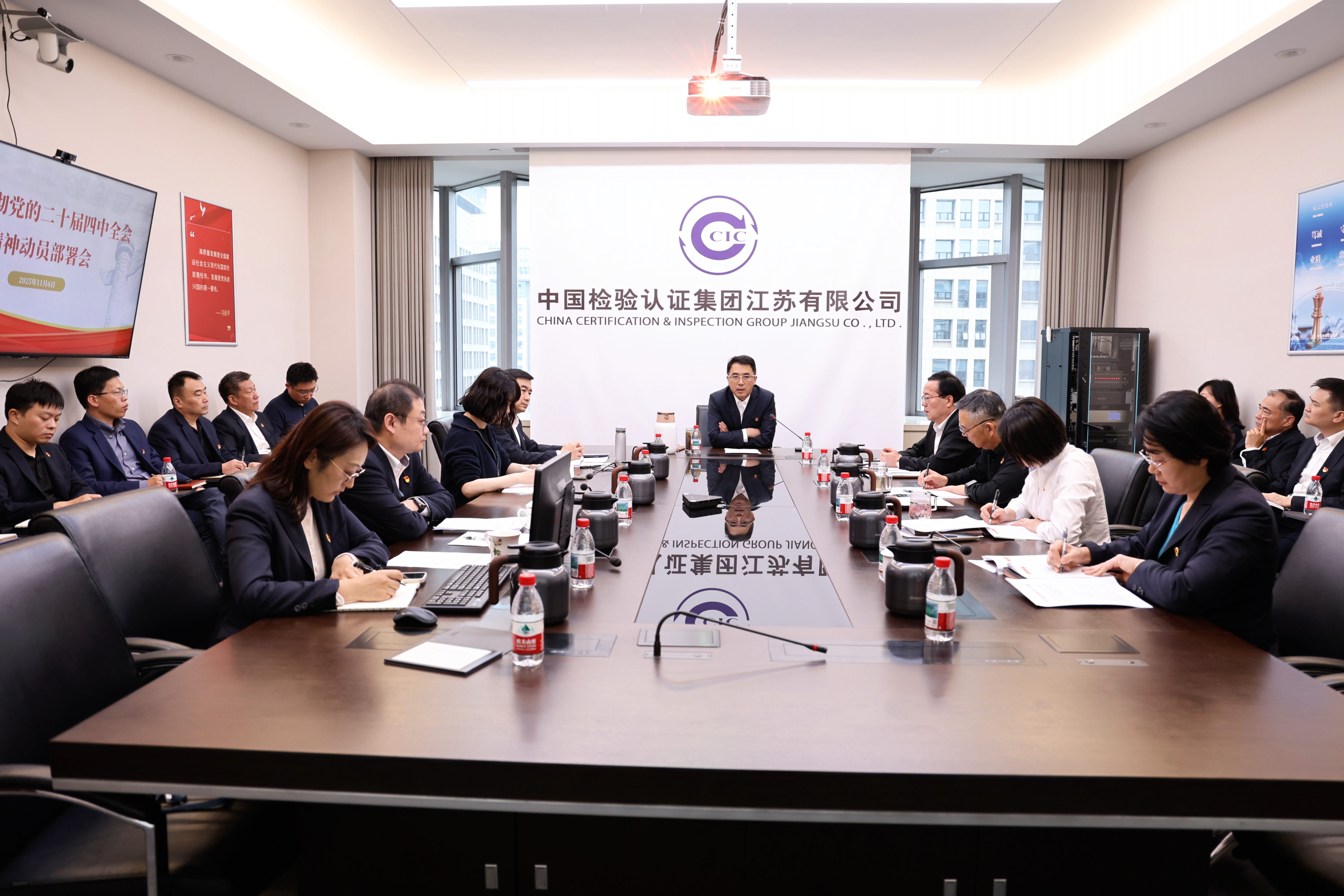 11月6日,中国中检江苏公司党委召开动员部署会,传达学习贯彻习近平总书记在党的二十届四中全会上的重要讲话和会议精神,落实集团党委相关通知要求。江苏公司党委书记、董事长安钢主持会议,公司领导班子及中层管理干部参加会议。