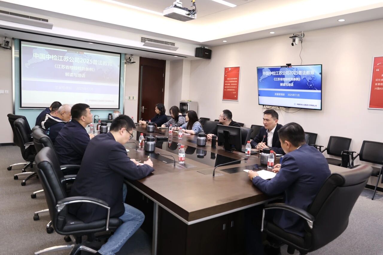 为提升公司依法合规经营水平,增强相关业务领域对检验检测法律法规的理解与适用能力,11月21日,中国中检江苏公司举办以“学习《江苏省检验检测条例》,筑牢合规发展基石”为主题的2025年度普法教育专题培训。江苏公司副总经理、总法律顾问付军出席会议并作动员讲话,公司相关部门质量负责人、业务骨干及合规管理人员等80余人通过线上与线下相结合的方式参加培训。